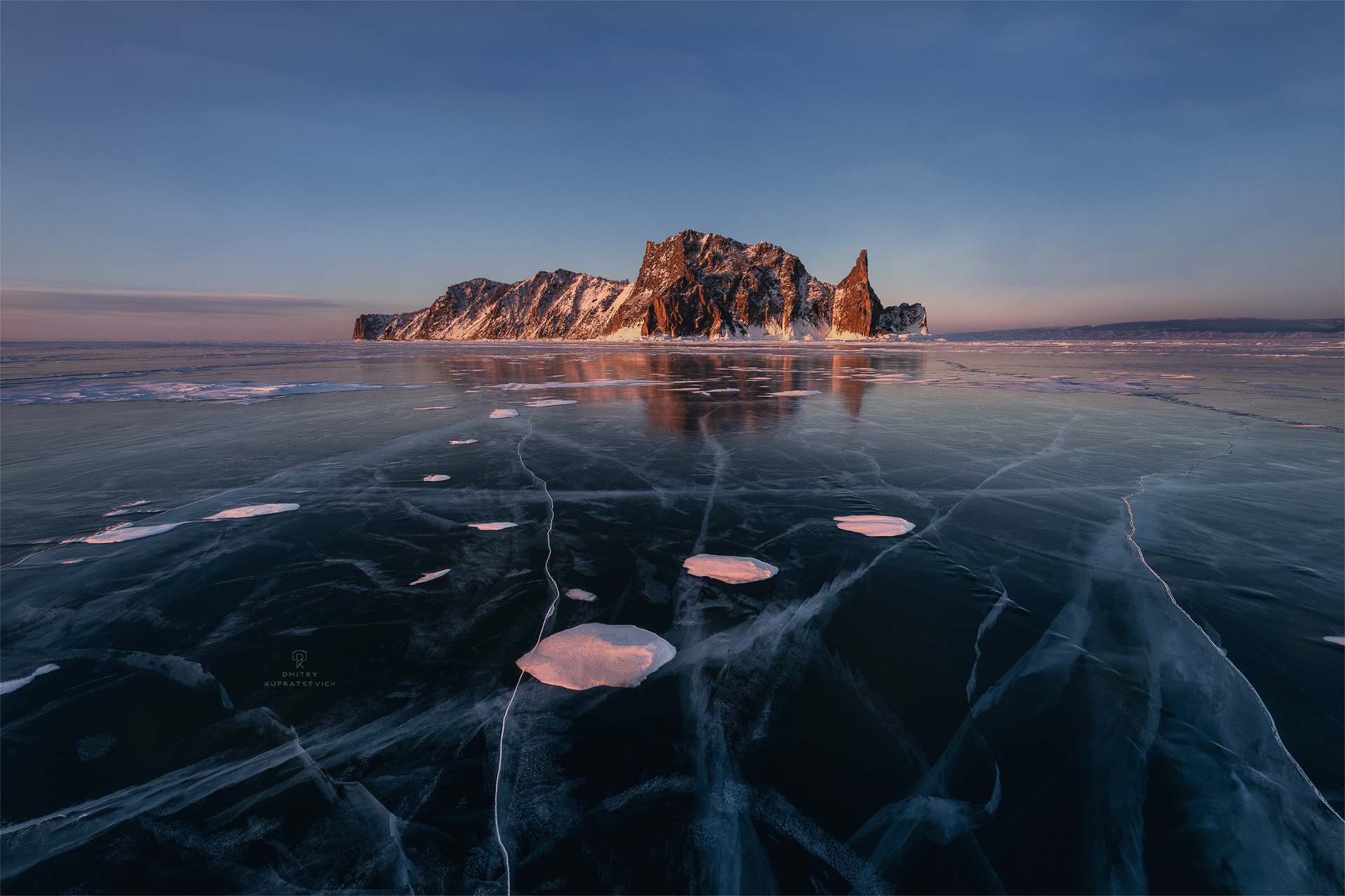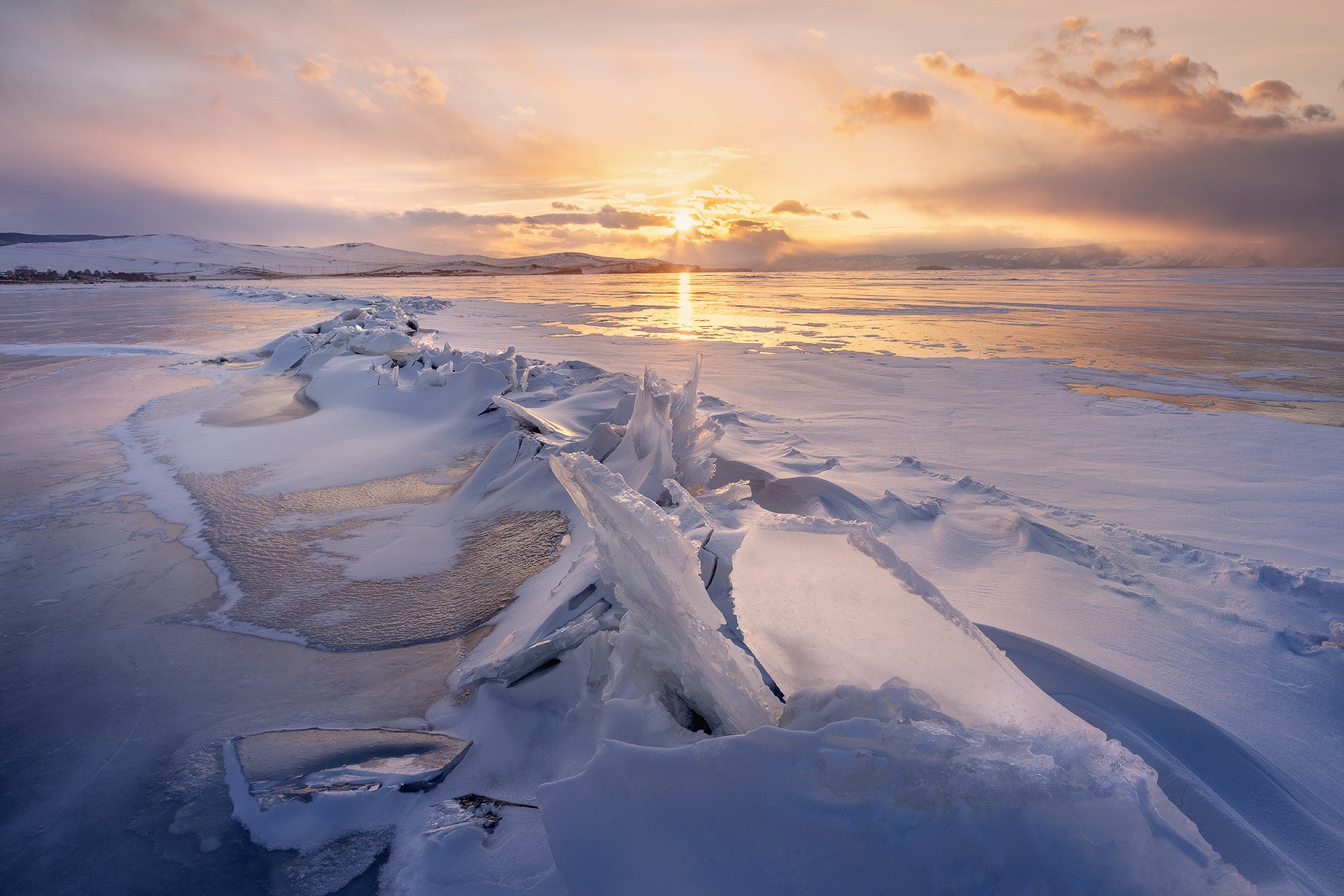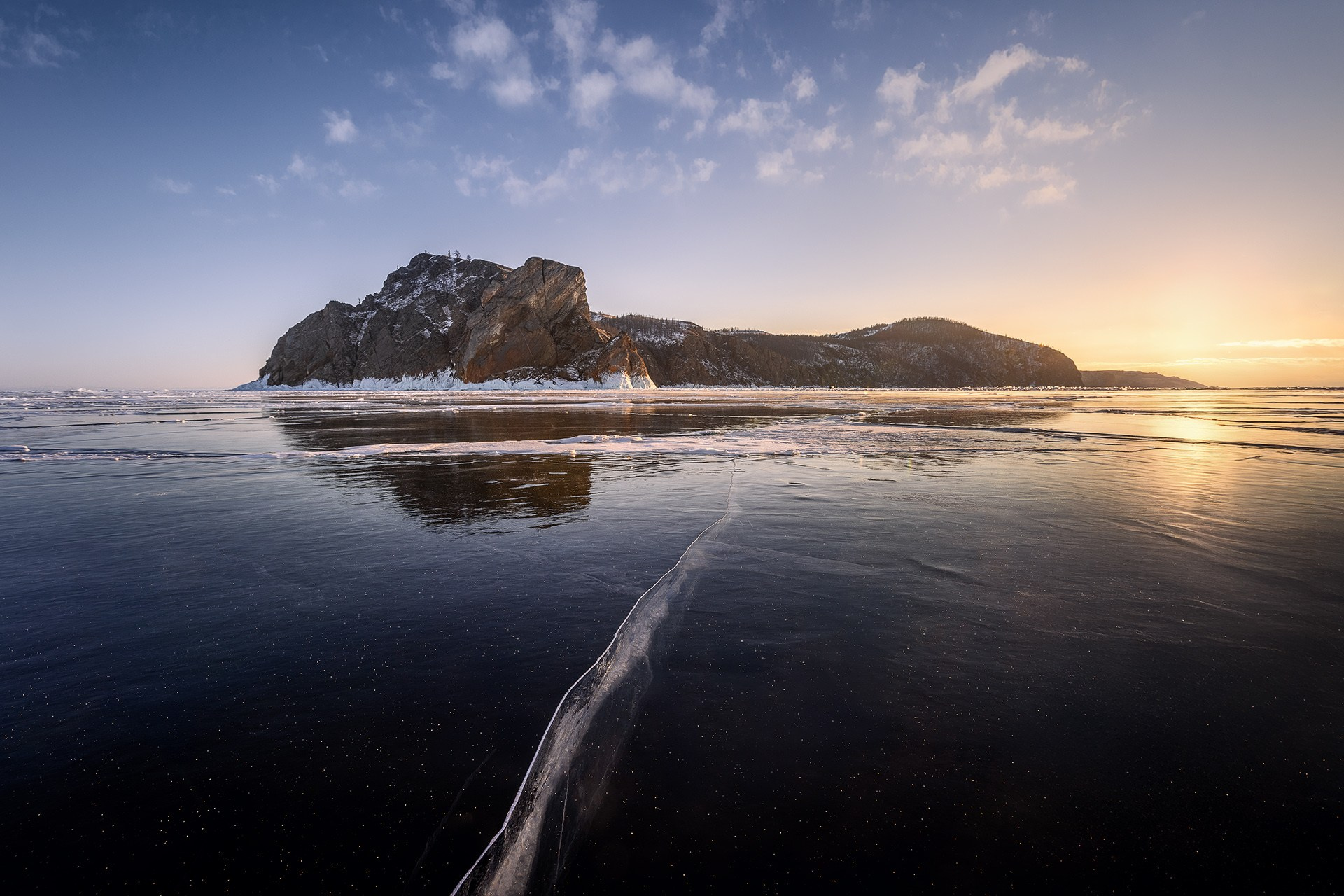 Байкал славится своей кристально чистой водой. Замерзая, она становится голубым прозрачным льдом, образуя формы, которые завораживают своим видом. Ледяные торосы, гроты на скалистых берегах и многокилометровые трещины. Все это сверкает и переливается во время красивейших закатов и рассветов. А свежий чистейший воздух, насыщенный запахами сибирской тайги, делает эти места уникальными. Зима на Байкале длится до середины марта. И начало весны — отличное время, чтобы побывать на острове Ольхон и увидеть необычные льды Байкала.