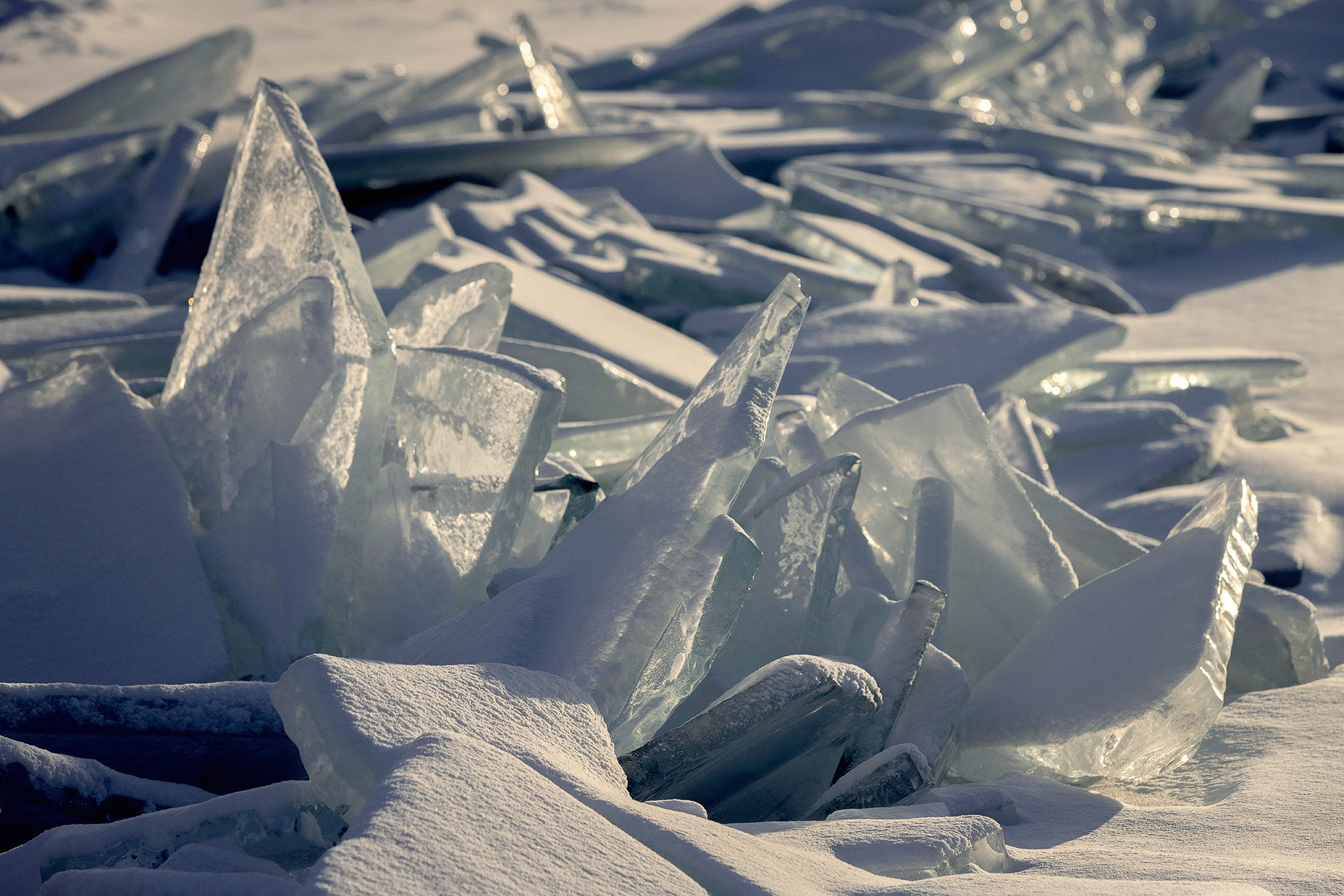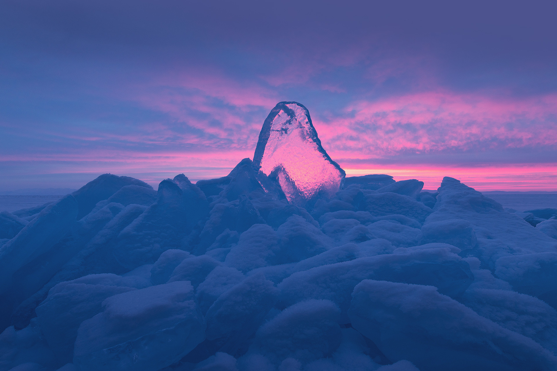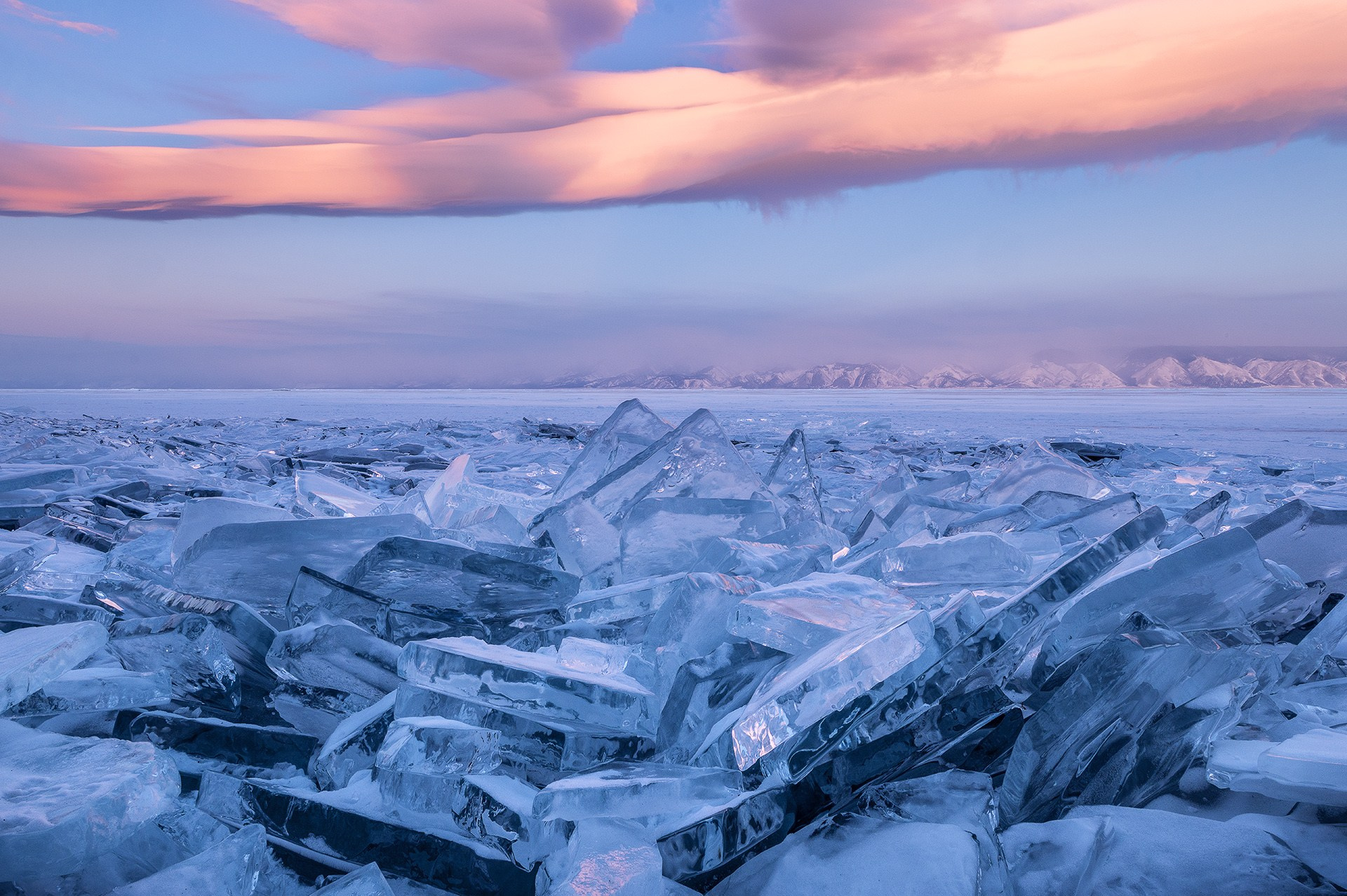Байкал славится своей кристально чистой водой. Замерзая, она становится голубым прозрачным льдом, образуя формы, которые завораживают своим видом. Ледяные торосы, гроты на скалистых берегах и многокилометровые трещины. Все это сверкает и переливается во время красивейших закатов и рассветов. А свежий чистейший воздух, насыщенный запахами сибирской тайги, делает эти места уникальными. Зима на Байкале длится до середины марта. И начало весны — отличное время, чтобы побывать на острове Ольхон и увидеть необычные льды Байкала.