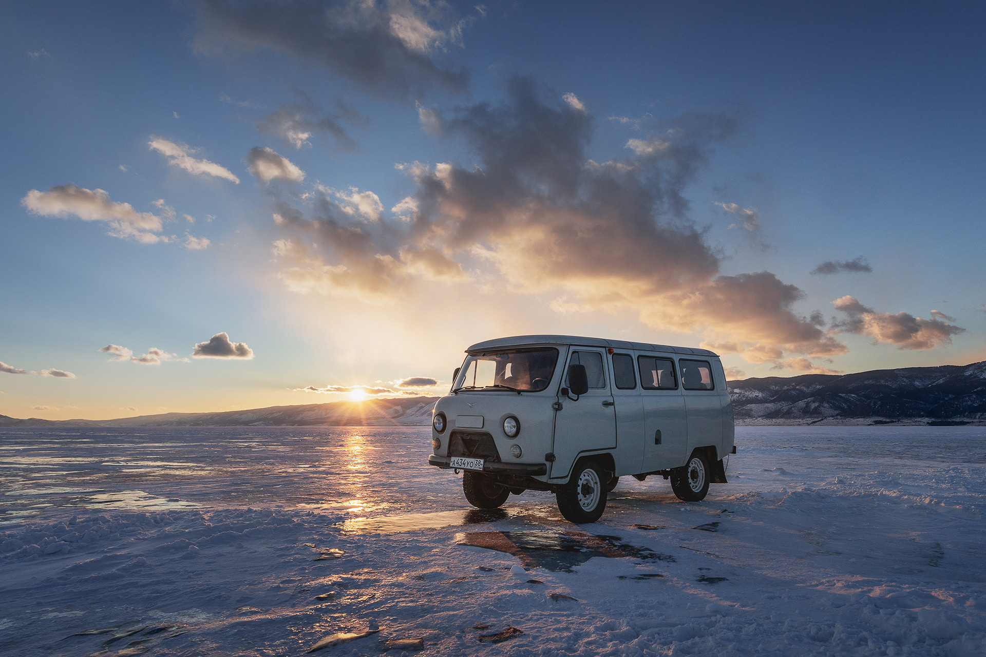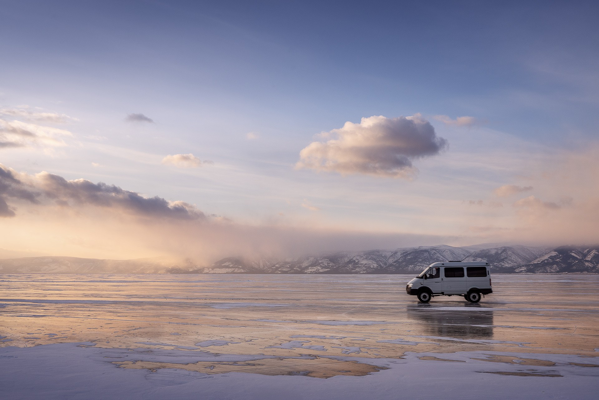 - Ранний подъём. Выезд на лед пролива Ольхонские ворота, утренняя фотосъёмка льда.
