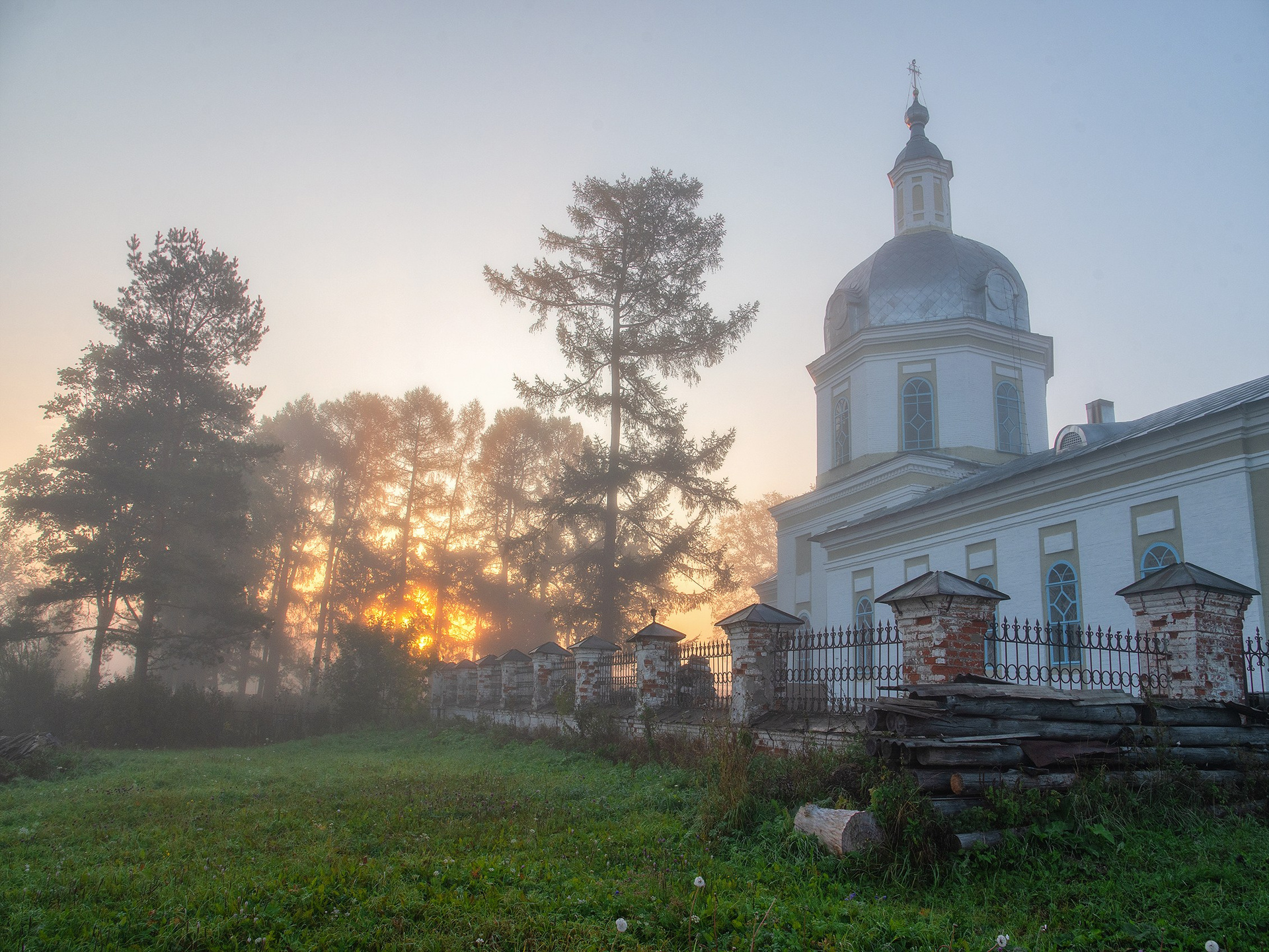 - Утренняя съемка в селе Истобенск, известном своими живописными видами на реку и церквями.